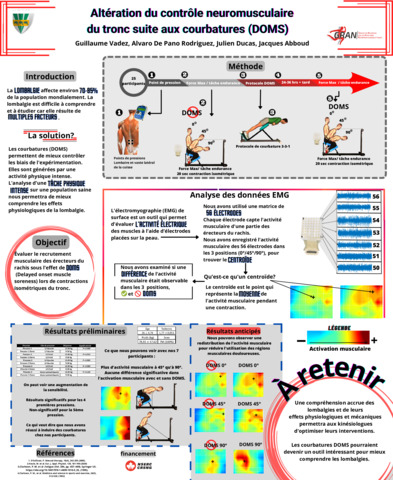 Vadez, Guillaume, Rodriguez, Alvano De Pano, Ducas, Julien et Abboud, Jacques (2023). Altération du contrôle neuromusculaire du tronc suite aux courbatures (DOMS). [Affiche]