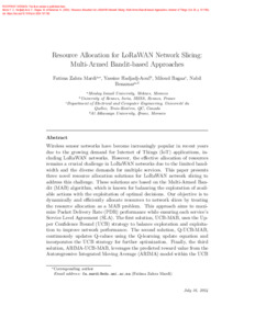 Mardi, F. Z., Hadjadj-Aoul, Y., Bagaa, M. et Benamar, N. (2024). Resource allocation for LoRaWAN network slicing: Multi-Armed Bandit-based approaches. Internet of Things, 26 . p. 101195. ISSN 2542-6605 DOI 10.1016/j.iot.2024.101195