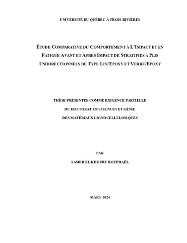 El Khoury Rouphaël, Samer (2024). Étude comparative du comportement à l'impact et en fatigue avant et apres impact de stratifies à plis unidirectionnels de type lin/epoxy et verre/epoxy. Thèse. Trois-Rivières, Université du Québec à Trois-Rivières, 198 p.