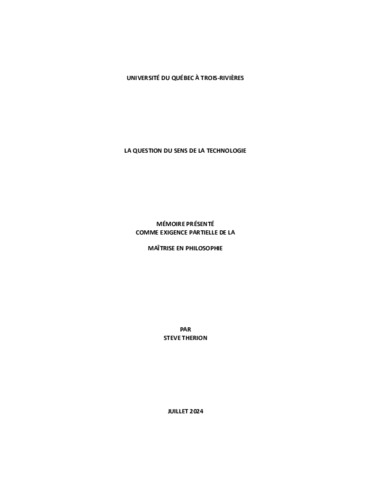 Therion, Steve (2024). La question du sens de la technologie. Mémoire. Trois-Rivières, Université du Québec à Trois-Rivières, 157 p.