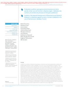 Le besoin d’un échantillon de parole de qualité pour l’évaluation des individus présentant une dysfonction vélopharyngée est reconnu depuis longtemps. Or, à ce jour, aucune liste de phrases contrôlées n’a été publiée pour l’évaluation auditivo-perceptive de la fonction vélopharyngée en français québécois. Le but du présent projet clinique était donc de développer et de valider une liste de phrases contrôlées en français québécois. Suivant un processus délibératif, ce projet de recherche-action effectué en collaboration avec des orthophonistes expertes dans le domaine des troubles de la résonance et des dysfonctions vélopharyngées s’est effectué en deux phases : (a) la création de la liste de phrases et (b) la validation de contenu des phrases et la documentation de leurs caractéristiques d’utilisation. Lors de la phase 1, les membres d’une communauté de pratique ont développé 20 phrases en suivant des critères phonético-linguistiques spécifiques. La phase 2 a débuté par l’envoi d’un questionnaire pour évaluer le respect et l’exhaustivité des critères pour chacune des phrases et pour documenter les contextes d’utilisation de l’outil. Le questionnaire a été rempli par 13 orthophonistes utilisant la liste de phrases dans leur pratique. Ensuite, deux rencontres de groupe ont été effectuées pour discuter des modifications finales à apporter à la liste. La liste de phrases est considérée par les orthophonistes expertes comme présentant une bonne validité de contenu. Les expertes recommandent l’utilisation de la liste de phrases finale dans le contexte de l’évaluation auditivo-perceptive à partir de trois ou quatre ans et jusqu’à l’âge adulte.