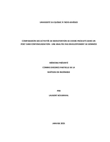 Bournival, Laurent (2025). Comparaison des activités de manutention de divers produits dans un port sans conteneurisation : une analyse par enveloppement de données. Mémoire. Trois-Rivières, Université du Québec à Trois-Rivières, 85 p.