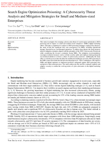 Duc Le, T., Le-Dinh, T. et Uwizeyemungu, S. (2024). Search engine optimization poisoning: A cybersecurity threat analysis and mitigation strategies for small and medium-sized enterprises. Technology in Society, 76 . p. 102470. ISSN 0160-791X DOI 10.1016/j.techsoc.2024.102470