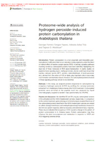 In this study, we analyzed proteins responsive to carbonylation by exogenous hydrogen peroxide (H2O2) by profiling the carbonyl proteome extracted from Arabidopsis thaliana leaves after H2O2 treatment. Carbonylated proteins were enriched at the peptide level and analyzed by liquid chromatography coupled to tandem mass spectrometry (LC-MS/MS).