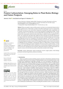 Plants are sessile in nature and they perceive and react to environmental stresses such as abiotic and biotic factors. These induce a change in the cellular homeostasis of reactive oxygen species (ROS). ROS are known to react with cellular components, including DNA, lipids, and pro-teins, and to interfere with hormone signaling via several post-translational modifications (PTMs). Protein carbonylation (PC) is a non-enzymatic and irreversible PTM induced by ROS. The non-enzymatic feature of the carbonylation reaction has slowed the efforts to identify functions regulated by PC in plants. Yet, in prokaryotic and animal cells, studies have shown the relevance of protein carbonylation as a signal transduction mechanism in physiological processes including hydrogen peroxide sensing, cell proliferation and survival, ferroptosis, and antioxidant response. In this review, we provide a detailed update on the most recent findings pertaining to the role of PC and its implications in various physiological processes in plants. By leveraging the progress made in bacteria and animals, we highlight the main challenges in studying the impacts of car-bonylation on protein functions in vivo and the knowledge gap in plants. Inspired by the success stories in animal sciences, we then suggest a few approaches that could be undertaken to overcome these challenges in plant research. Overall, this review describes the state of protein carbonylation research in plants and proposes new research avenues on the link between protein carbonylation and plant redox biology.