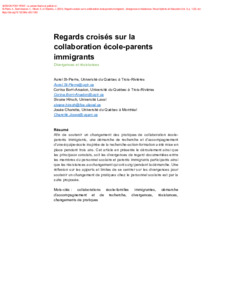 Afin de soutenir un changement des pratiques de collaboration école-parents immigrants, une démarche de recherche et d’accompagnement d’une équipe-école inspirée de la recherche-action-formation a été mise en place. Cet article en présente le déroulement ainsi que les principaux constats, soit les divergences de regard documentées entre les membres du personnel scolaire et parents immigrants participants ainsi que les résistances au changement qui ont surgi pendant la démarche. Une réflexion sur les apports et les limites d’une analyse centrée sur les divergences dans le but de soutenir un changement de pratiques chez le personnel scolaire est par la suite proposée.