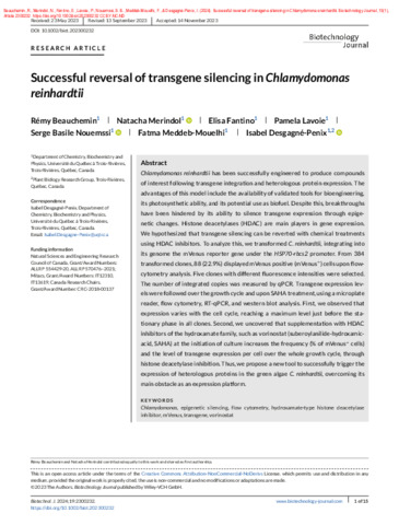 Beauchemin, R., Merindol, N., Fantino, E., Lavoie, P., Nouemssi, S. B., Meddeb-Mouelhi, F. et Desgagné-Penix, I. (2024). Successful reversal of transgene silencing in Chlamydomonas reinhardtii. Biotechnology Journal, 19 (1). Article 2300232. ISSN 1860-6768 1860-7314 DOI 10.1002/biot.202300232