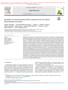 Diamond, A., Diaz-Garza, A. M., Li, J., Slattery, S. S., Merindol, N., Fantino, E., Meddeb-Mouelhi, F., Karas, B. J., Barnabé, S. et Desgagné-Penix, I. (2023). Instability of extrachromosomal DNA transformed into the diatom Phaeodactylum tricornutum. Algal Research, 70 . Article 102998. ISSN 2211-9264 DOI 10.1016/j.algal.2023.102998