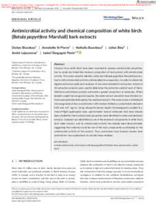 Blondeau, D., St-Pierre, A., Bourdeau, N., Bley, J., Lajeunesse, A. et Desgagné-Penix, I. (2020). Antimicrobial activity and chemical composition of white birch (Betula papyrifera Marshall) bark extracts. MicrobiologyOpen, 9 (1). Article e00944. ISSN 2045-8827 DOI 10.1002/mbo3.944