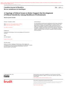 Drolet, M.-J. (2024). A typology of ethical issues to better support the development of ethical sensitivity among healthcare professionals. Canadian Journal of Bioethics / Revue canadienne de bioéthique, 7 (4). pp. 96-101. ISSN 2561-4665 DOI 10.7202/1114963ar