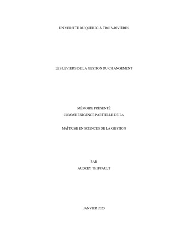 Thiffault, Audrey (2025). Les leviers de la gestion du changement. Mémoire. Trois-Rivières, Université du Québec à Trois-Rivières, 112 p.