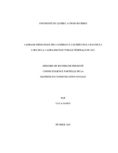 Sanou, Yaya (2025). Cadrage médiatique des candidat.e.s québécois.e.s racisé.e.s lors de la campagne électorale fédérale de 2021. Mémoire. Trois-Rivières, Université du Québec à Trois-Rivières, 108 p.