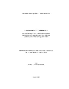 Lewis St-Pierre, Aurel (2025). L’inconfort et la différence : étude critique de la prise en compte des choix vestimentaires des élèves à l’école secondaire québécoise. Mémoire. Trois-Rivières, Université du Québec à Trois-Rivières, 343 p.