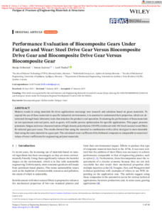 Hriberšek, M., Kulovec, S. et Toubal, L. (2025). Performance evaluation of biocomposite gears under fatigue and wear: Steel drive gear versus biocomposite drive gear and biocomposite drive gear versus biocomposite gear. Fatigue & Fracture of Engineering Materials & Structures, 48 (4). pp. 1768-1781. ISSN 8756-758X DOI 10.1111/ffe.14590