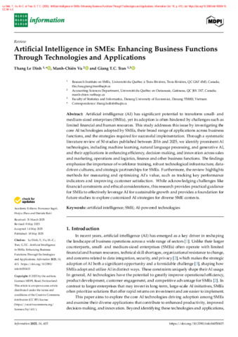 Le Dinh, T., Vu, M.-C. et Tran, G. T.C. (2025). Artificial Intelligence in SMEs: Enhancing Business Functions Through Technologies and Applications. Information, 16 (5). p. 415. ISSN 2078-2489 DOI 10.3390/info16050415