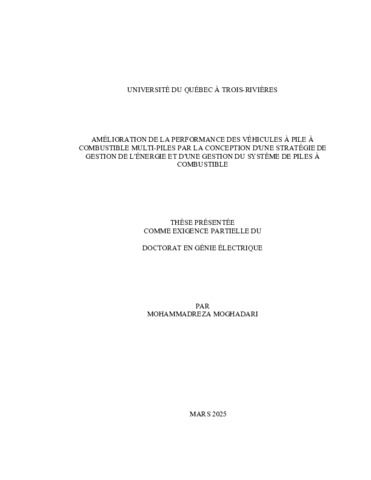 Moghadari, Mohammadreza (2025). Amélioration de la performance des véhicules à pile à combustible multi-piles par la conception d'une stratégie de gestion de l'énergie et d'une gestion du système de piles à combustible = Enhancing the performance of multi-stack fuel cell vehicles through the design of energy management strategy and fuel cell system management. Thèse. Trois-Rivières, Université du Québec à Trois-Rivières, 143 p.