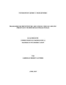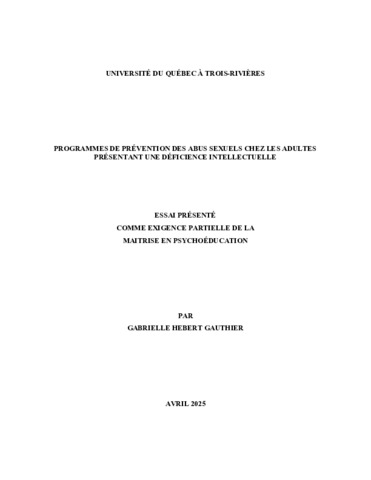 Hebert Gauthier, Gabrielle (2025). Programmes de prévention des abus sexuels chez les adultes présentant une déficience intellectuelle. Essai. Trois-Rivières, Université du Québec à Trois-Rivières, 40 p.