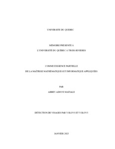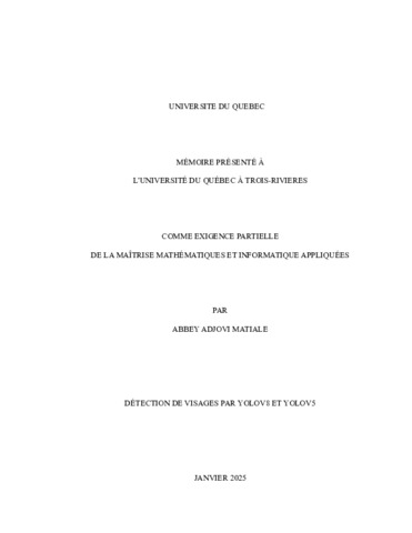Abbey, Adjovi Matiale (2025). Détection de visages par YOLOv8 et YoloV5. Mémoire. Trois-Rivières, Université du Québec à Trois-Rivières, 88 p.