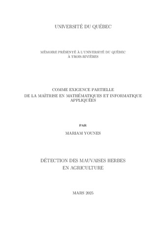 Younes, Mariam (2025). Détection des mauvaises herbes en agriculture. Mémoire. Trois-Rivières, Université du Québec à Trois-Rivières, 63 p.