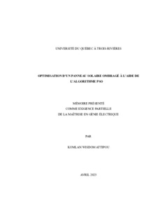 Attipou, Komlan Wisdom (2025). Optimisation d’un panneau solaire ombragé à l’aide de l’algorithme PSO. Mémoire. Trois-Rivières, Université du Québec à Trois-Rivières, 84 p.