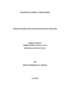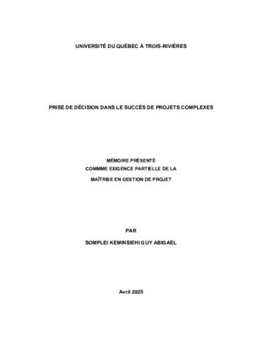 Somplei, Keminsiehi Guy Abigael (2025). Prise de décision dans le succès de projets complexes. Mémoire. Trois-Rivières, Université du Québec à Trois-Rivières, 116 p.
