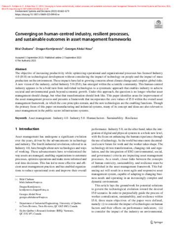 Chabane, B., Komljenovic, D. et Abdul-Nour, G. (2023). Converging on human-centred industry, resilient processes, and sustainable outcomes in asset management frameworks. Environment Systems and Decisions, 43 (4). pp. 663-679. ISSN 2194-5403 2194-5411 DOI 10.1007/s10669-023-09943-w