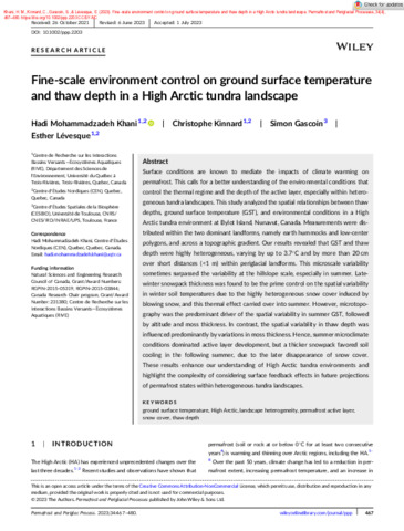 Khani, H. M., Kinnard, C., Gascoin, S. et Lévesque, E. (2023). Fine-scale environment control on ground surface temperature and thaw depth in a High Arctic tundra landscape. Permafrost and Periglacial Processes, 34 (4). pp. 467-480. ISSN 1045-6740 1099-1530 DOI 10.1002/ppp.2203