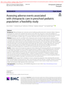 Dolbec, A., Doucet, C., Pohlman, K. A., Sobczak, S. et Pagé, I. (2024). Assessing adverse events associated with chiropractic care in preschool pediatric population: a feasibility study. Chiropractic & Manual Therapies, 32 (1). p. 9. ISSN 2045-709X DOI 10.1186/s12998-024-00529-0