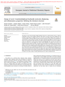 Cloutier, F., Oufqir, Y., Fortin, L., Leclerc, M.-F., Girouard, J., Tajmir-Riahi, H.-A., Reyes-Moreno, C. et Bérubé, G. (2022). Design of novel 4-maleimidylphenyl-hydrazide molecules displaying anti-inflammatory properties: Refining the chemical structure. European Journal of Medicinal Chemistry Reports, 5 . p. 100064. ISSN 2772-4174 DOI 10.1016/j.ejmcr.2022.100064