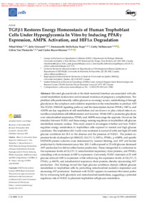 Khiat, N., Girouard, J., Kana Tsapi, E. S., Vaillancourt, C., Van Themsche, C. et Reyes-Moreno, C. (2025). TGFβ1 Restores Energy Homeostasis of Human Trophoblast Cells Under Hyperglycemia In Vitro by Inducing PPARγ Expression, AMPK Activation, and HIF1α Degradation. Cells, 14 (1). p. 45. ISSN 2073-4409 DOI 10.3390/cells14010045