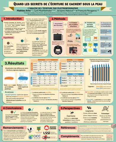 Arès, Mathieu, Muehlethaler, Cyril, Abboud, Jacques et Nougarou, François (2025). Quand les secrets de l'écriture se cachent sous la peau : l'analyse de l'écriture par électromyographie. [Affiche]