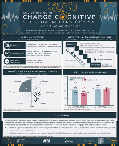 | Mots-clés libres: | affiche scientifique concours UQTR 2025 effet charge cognitive contenu stéréotype situation écoute |