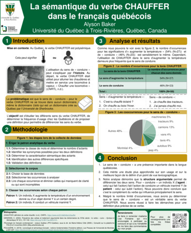 Baker, Alyson . La sémantique du verbe chauffer dans le français québécois. [Affiche]