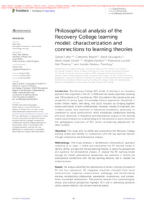 This study aims to define and characterize the Recovery College learning model and identify its connections with the key learning theories through a theoretical and philosophical analysis.