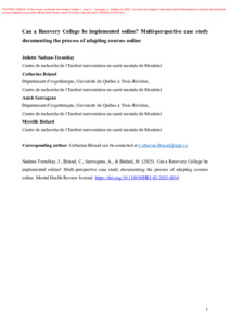 Nadeau-Tremblay, J., Briand, C., Sauvageau, A. et Bédard, M. (2025). Can a Recovery College be implemented online? Multi-perspective case study documenting the process of adapting courses online. Mental Health Review Journal . ISSN 1361-9322 2042-8758 DOI 10.1108/MHRJ-02-2025-0014