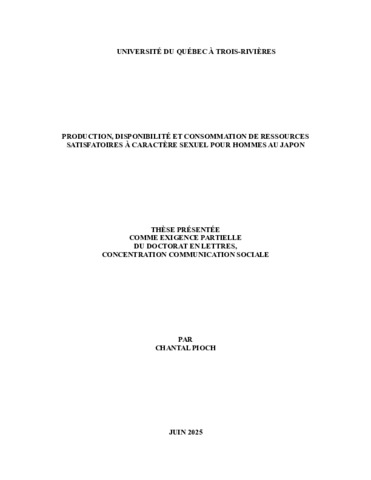 Pioch, Chantal (2025). Production, disponibilité et consommation de ressources satisfatoires à caractère sexuel pour hommes au Japon. Thèse. Trois-Rivières, Université du Québec à Trois-Rivières, 275 p.