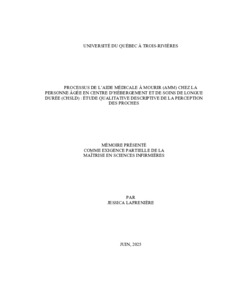 Lafrenière, Jessica (2025). Processus de l’aide médicale à mourir (AMM) chez la personne âgée en centre d’hébergement et de soins de longue durée (CHSLD) : étude qualitative descriptive de la perception des proches. Mémoire. Trois-Rivières, Université du Québec à Trois-Rivières, 145 p.