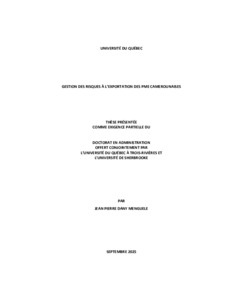 Menguele, Jean Pierre Dany (2025). Gestion des risques à l'exportation des PME camerounaises. Thèse. Trois-Rivières;Sherbrooke, Université du Québec à Trois-Rivières;Université de Sherbrooke, 336 p.