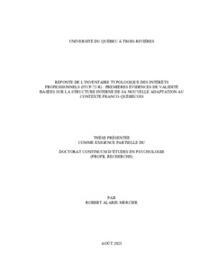 Alarie-Mercier, Robert (2025). Refonte de l’inventaire typologique des intérêts professionnels (ITCP-72-R) : premières évidences de validité basées sur la structure interne de sa nouvelle adaptation au contexte franco-québécois. Thèse. Trois-Rivières, Université du Québec à Trois-Rivières, 389 p.