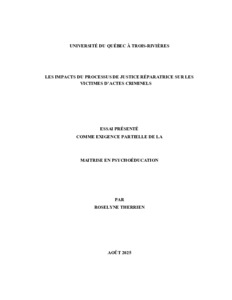 Therrien, Roselyne (2025). Les impacts du processus de justice réparatrice sur les victimes d’actes criminels. Essai. Trois-Rivières, Université du Québec à Trois-Rivières, 31 p.