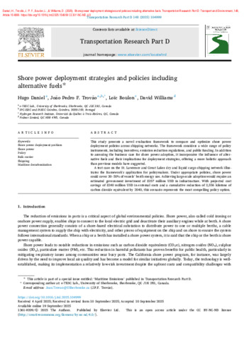 Daniel, H., Trovão, J. P. F., Boulon, L. et Williams, D. (2025). Shore power deployment strategies and policies including alternative fuels. Transportation Research Part D: Transport and Environment, 148 . Article 104999. ISSN 1361-9209 1879-2340 DOI 10.1016/j.trd.2025.104999