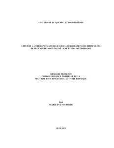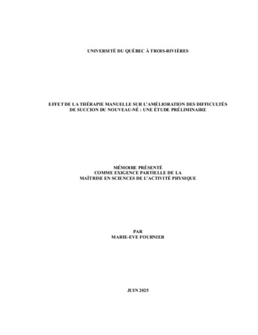Fournier, Marie-Ève (2025). Effet de la thérapie manuelle sur l’amélioration des difficultés de succion du nouveau-né : une étude préliminaire. Mémoire. Trois-Rivières, Université du Québec à Trois-Rivières, 115 p.