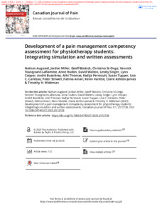 Augeard, N., Miller, J., Bostick, G., St-Onge, C., Tousignant-Laflamme, Y., Hudon, A., Walton, D., Singer, L., Cooper, L., Bussières, A., Thomas, A., Perreault, K., Tupper, S., Carlesso, L. C., Stilwell, P., Amari, F., Varette, K., Ashton-James, C. et Wideman, T. H. (2025). Development of a pain management competency assessment for physiotherapy students: Integrating simulation and written assessments. Canadian Journal of Pain, 9 (1). Article 2512728. ISSN 2474-0527 DOI 10.1080/24740527.2025.2512728