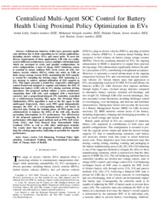 Lotfy, A., Alzayed, M., Chaoui, H. et Boulon, L. (2025). Centralized multi-agent SOC control for battery health using proximal policy optimization in EVs. IEEE Transactions on Vehicular Technology . ISSN 0018-9545 1939-9359 DOI 10.1109/TVT.2025.3571784