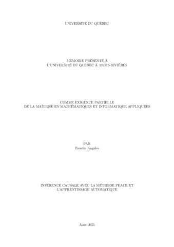 Kagabo, Faustin (2025). Inférence causale avec la méthode PEACE et l’apprentissage automatique. Mémoire. Trois-Rivières, Université du Québec à Trois-Rivières, 52 p.