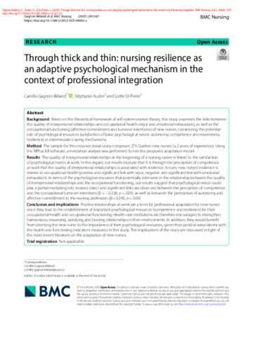 Gagnon-Béland, C., Austin, S. et St-Pierre, L. (2025). Through thick and thin: nursing resilience as an adaptive psychological mechanism in the context of professional integration. BMC Nursing, 24 (1). Article 1367. ISSN 1472-6955 DOI 10.1186/s12912-025-04003-x