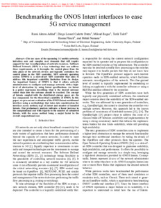 Addad, R. A., Dutra, D. L. C., Bagaa, M., Taleb, T., Flinck, H. et Namane, M. (2018). Benchmarking the ONOS intent interfaces to ease 5G service management. Dans 2018 IEEE Global Communications Conference (GLOBECOM) DOI 10.1109/GLOCOM.2018.8648078.
