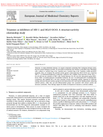 Mérindol, N., Hashemian, S. M., Sokhna, S., Girard, M.-P., Presset, M., Seck, I., Ba, L. A., Ka, S., Ndoye, S. F., Samb, I., Le Gall, E., Berthoux, L., Seck, M. et Desgagné-Penix, I. (2025). Triazenes as inhibitors of HIV-1 and HCoV-OC43: A structure-activity relationship study. European Journal of Medicinal Chemistry Reports, 15 . Article 100288. ISSN 2772-4174 DOI 10.1016/j.ejmcr.2025.100288