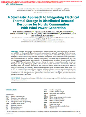 Domínguez-Jiménez, J., Henao, N., Agbossou, K., Parrado, A., Campillo, J. et Nagarsheth, S. H. (2023). A stochastic approach to integrating electrical thermal storage in distributed demand response for nordic communities with wind power generation. IEEE Open Journal of Industry Applications, 4 . pp. 121-138. ISSN 2644-1241 DOI 10.1109/OJIA.2023.3264651