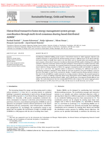 Etedadi, F., Kelouwani, S., Agbossou, K., Henao, N., Laurencelle, F. et Hosseini, S. S. (2024). Hierarchical transactive home energy management system groups coordination through multi-level consensus sharing-based distributed ADMM. Sustainable Energy, Grids and Networks, 39 . Article 101460. ISSN 2352-4677 DOI 10.1016/j.segan.2024.101460